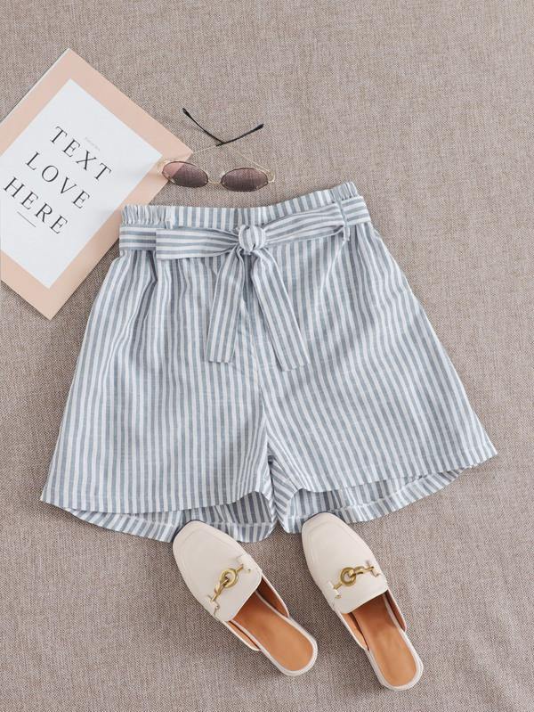 Striped Print Belted Wide Leg Shorts
