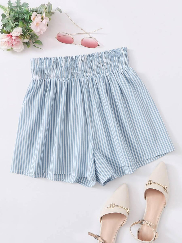 Striped Shirred Waist Shorts