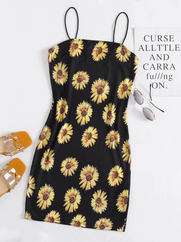 Sunflower Print Bodycon Dress - $17.00 SGD
