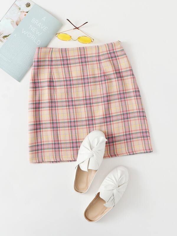 Tartan Plaid High Waist A-line Skirt - $24.00 SGD