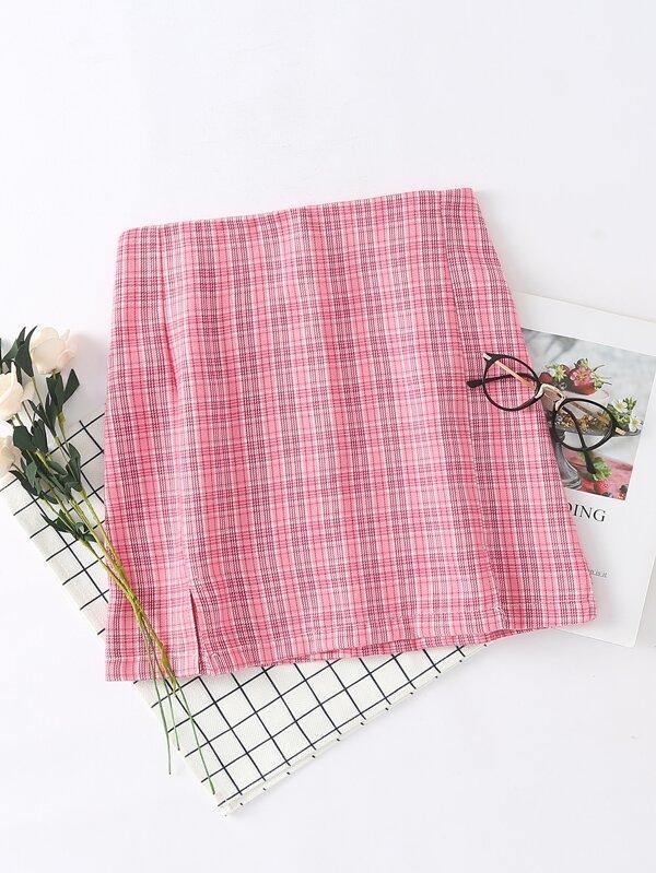 Tartan Plaid Slit Hem Skirt - $26.00 SGD