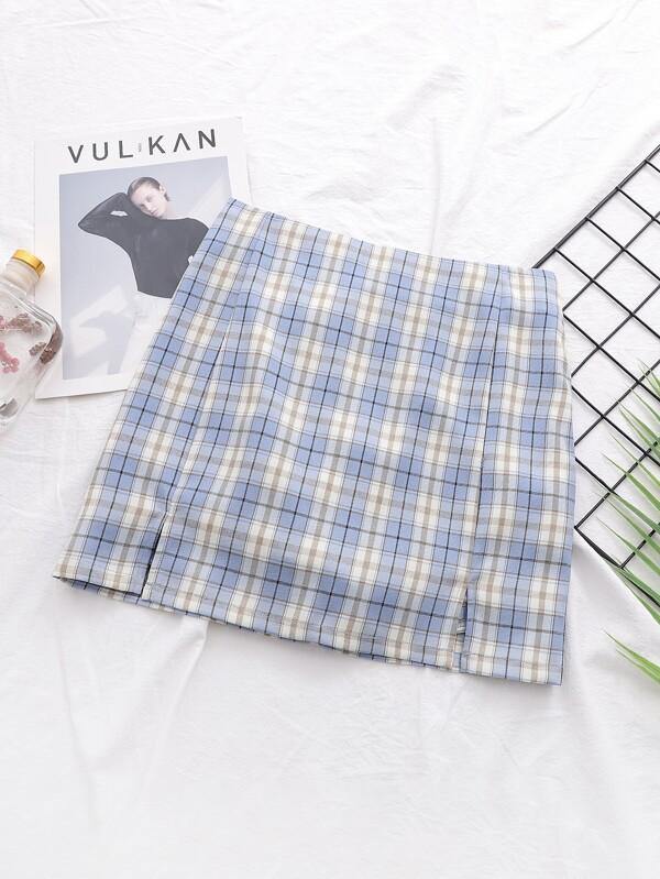 Tartan Slit Hem Mini Skirt - $21.00 SGD