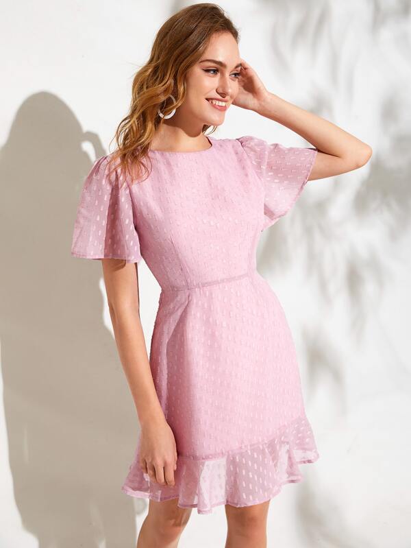 Textured Flutter Sleeve A-Line Dress - $29.00 SGD
