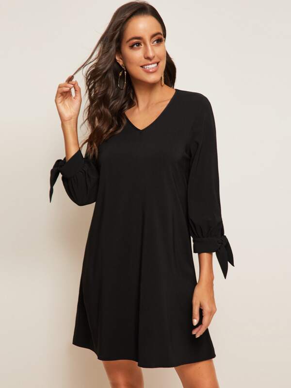 V-neck Knot Cuff Tunic Dress - $35.00 SGD
