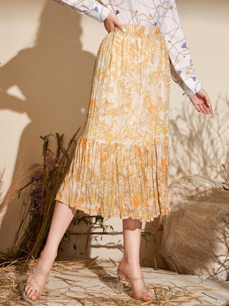 Allover Floral Elastic Waist Pleated Skirt - $35.00 SGD