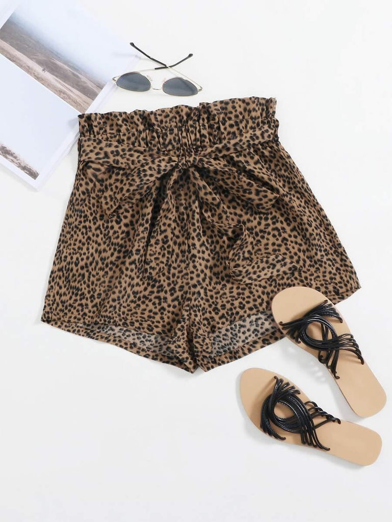 Allover Print Paperbag Waist Self Belted Shorts - $16.00 SGD
