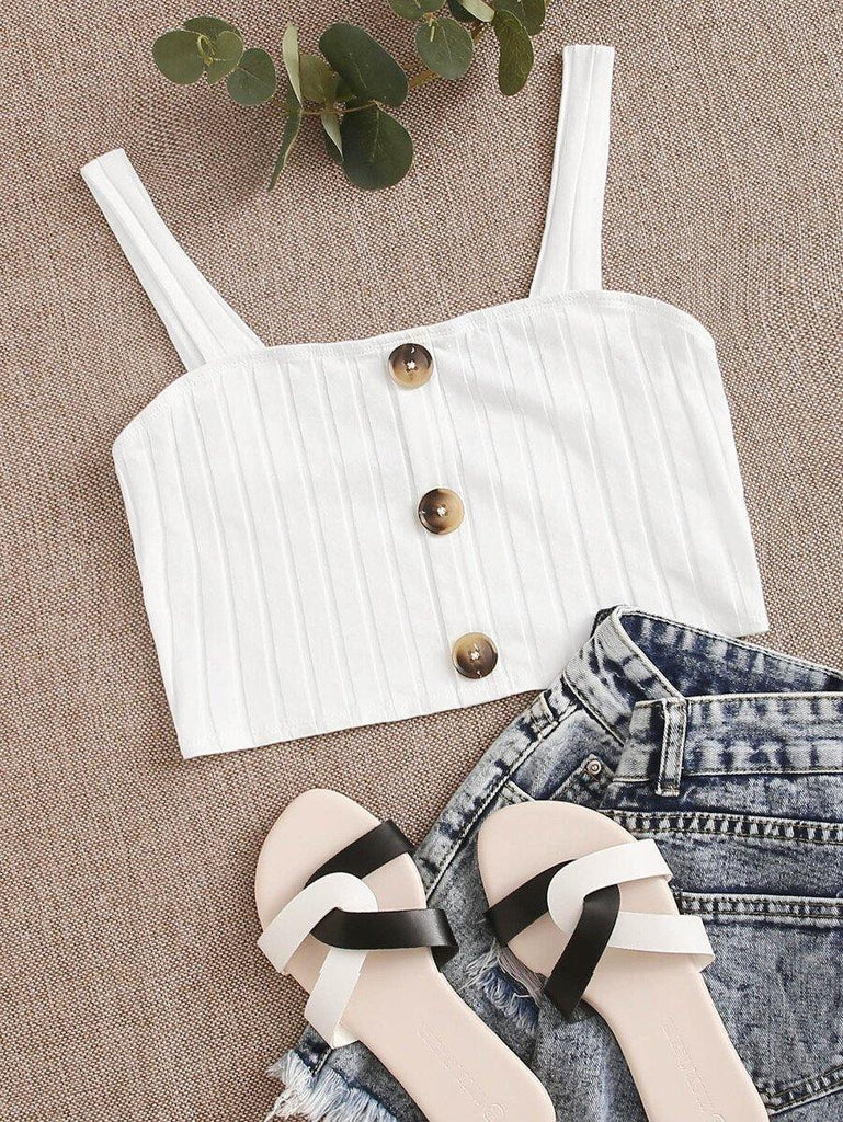 Button Front Rib-knit Crop Cami Top - $18.00 SGD