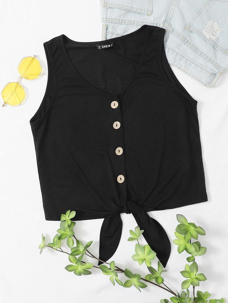 Button Front Tie Hem Tank Top - $29.00 SGD