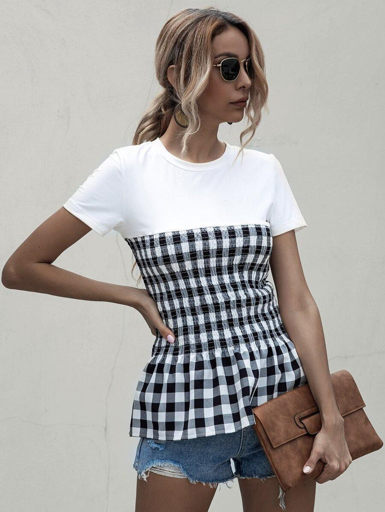 Contrast Gingham Shirred Tee - $22.00 SGD