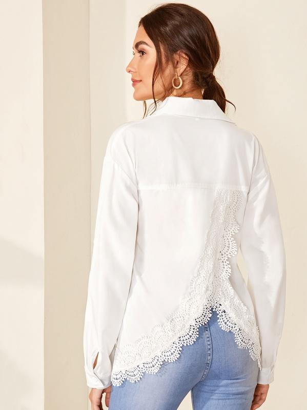 Contrast Guipure Lace Solid Blouse - $22.00 SGD