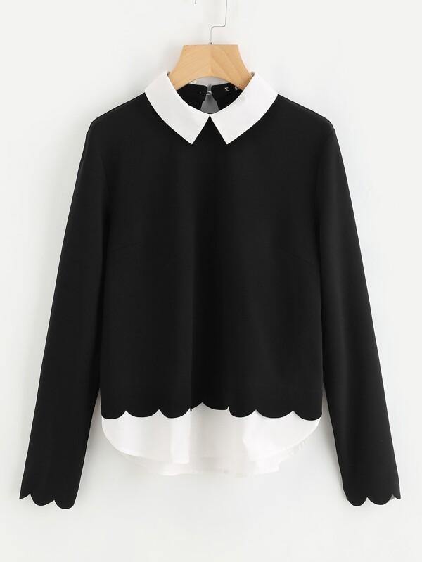 Contrast Trim Scallop Edge 2 In 1 Blouse