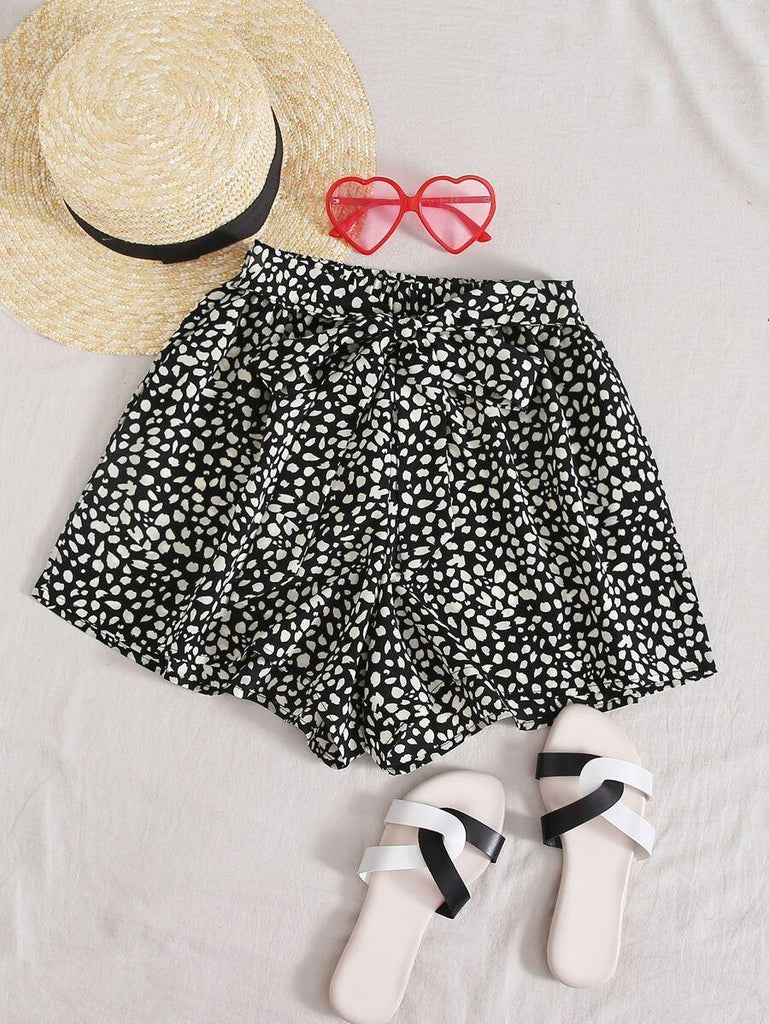 Dalmatian Print Belted Wide Leg Shorts