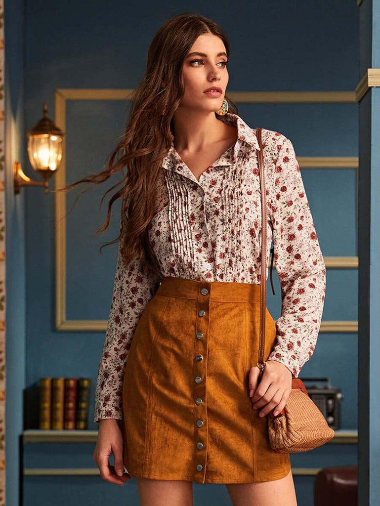 Ditsy Floral Print Button Through Chiffon Blouse - $22.00 SGD