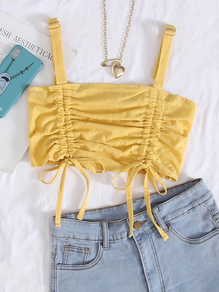 Drawstring Ruched Shirred Crop Cami Top