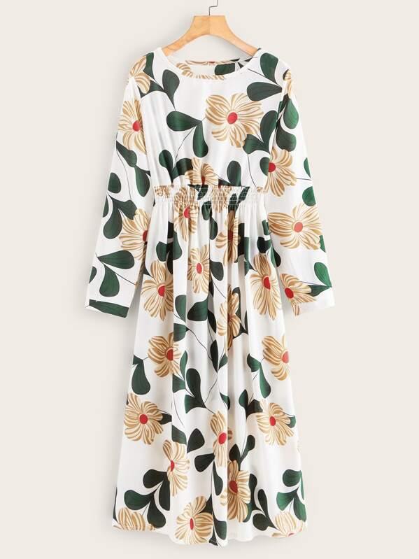 Floral Print Shirred Waist Dress
