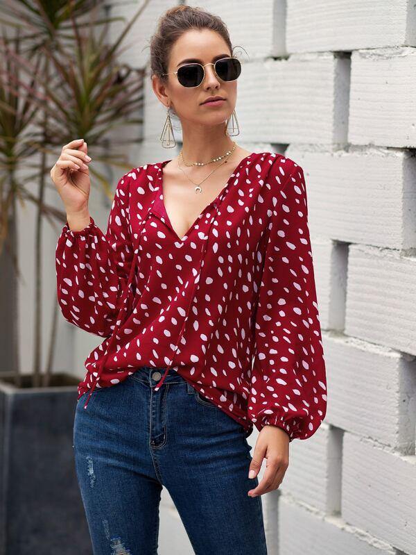 Graphic Print Lantern Sleeve Blouse - $19.00 SGD