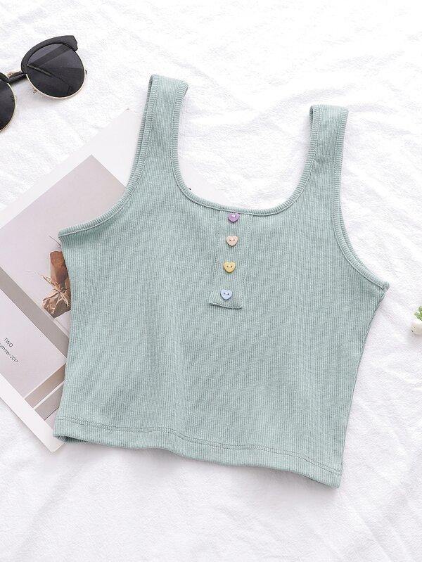 Heart Button Rib-knit Tank Top