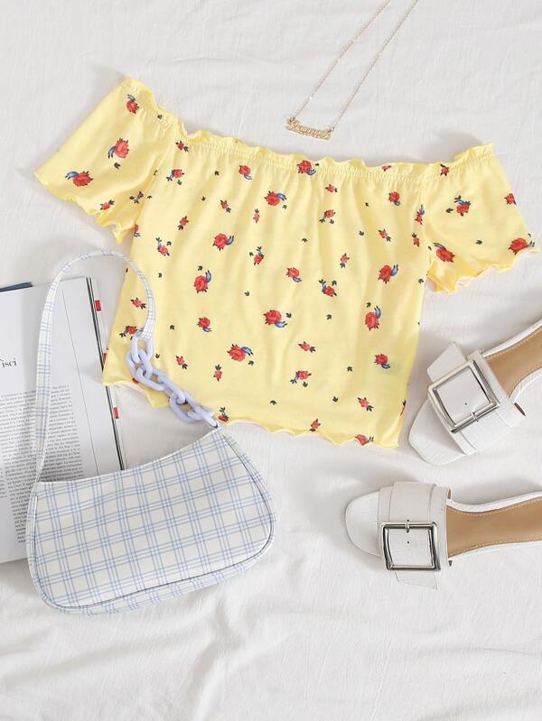 Off Shoulder Lettuce Edge Top
