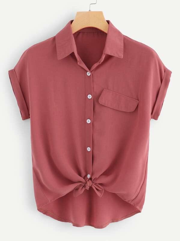 Rolled Cuff Knotted Hem Shirt - $35.00 SGD