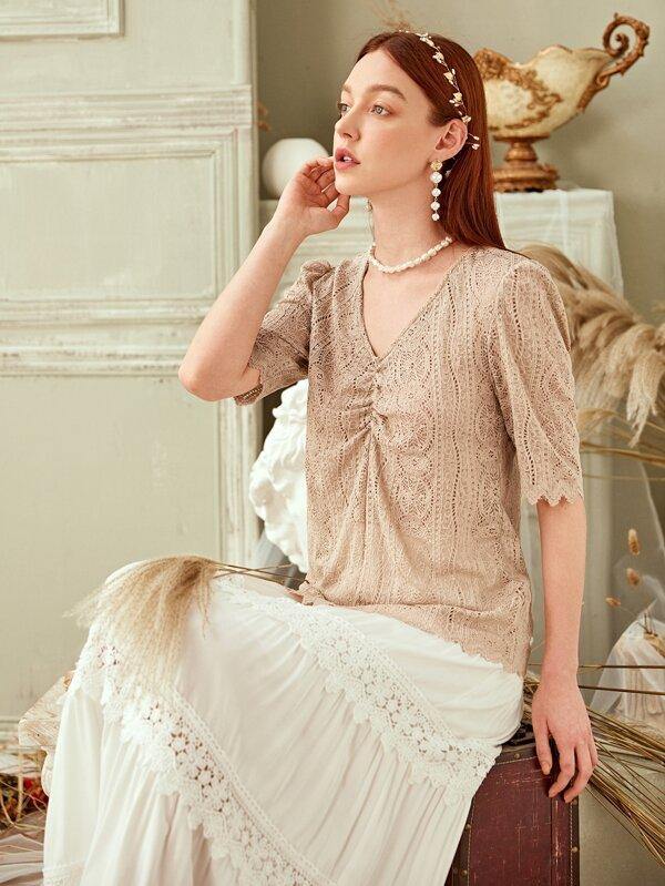Ruched Front Solid Lace Top