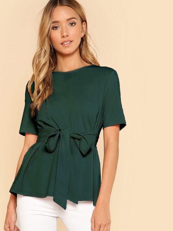 Self Belt Keyhole Back Solid Top - $16.00 SGD