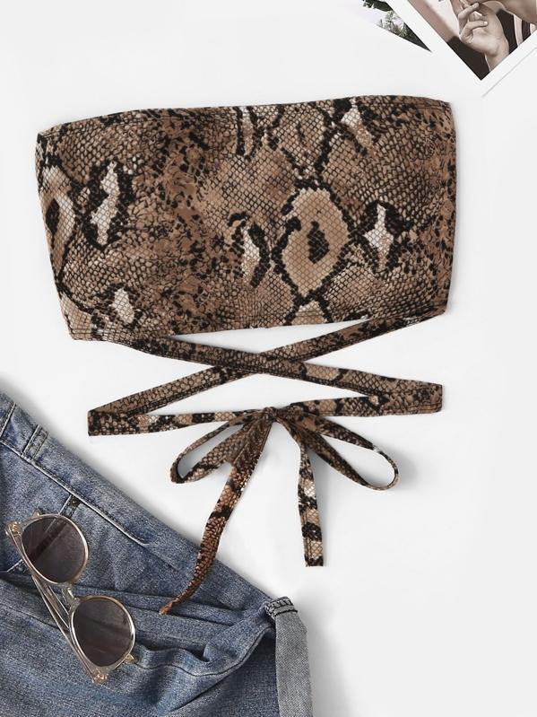 Snakeskin Print Cropped Tube Top - $24.00 SGD