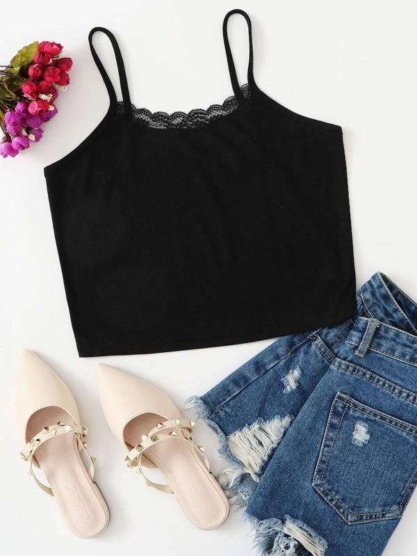 Solid Lace Trim Cami Top