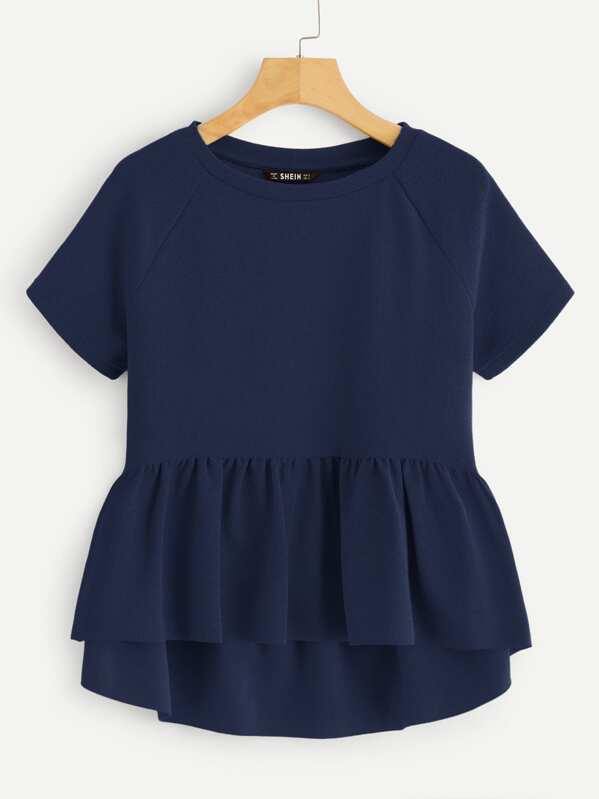 Solid Raglan Sleeve Ruffle Hem Top
