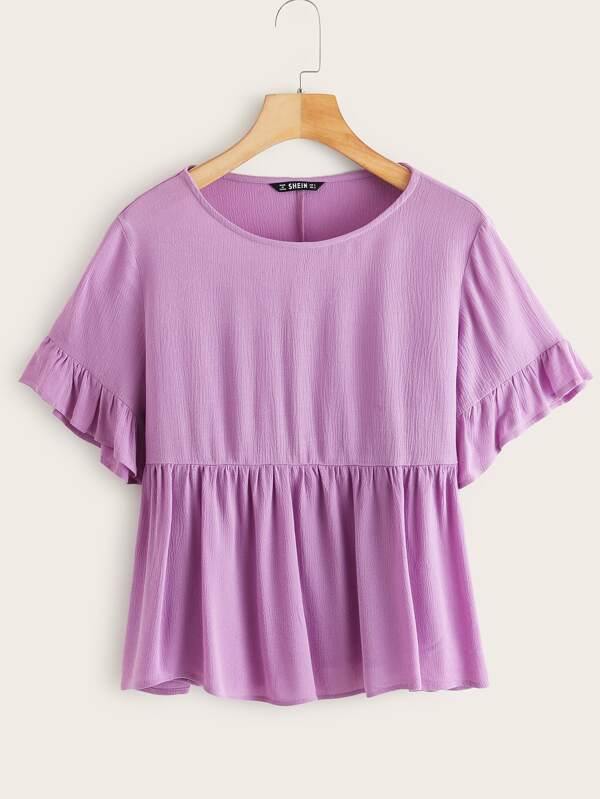 Solid Ruffle Hem Peplum Top - $18.00 SGD