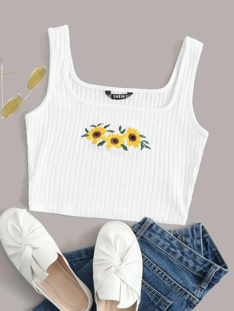 Sunflower Embroidered Tank Top - $21.00 SGD
