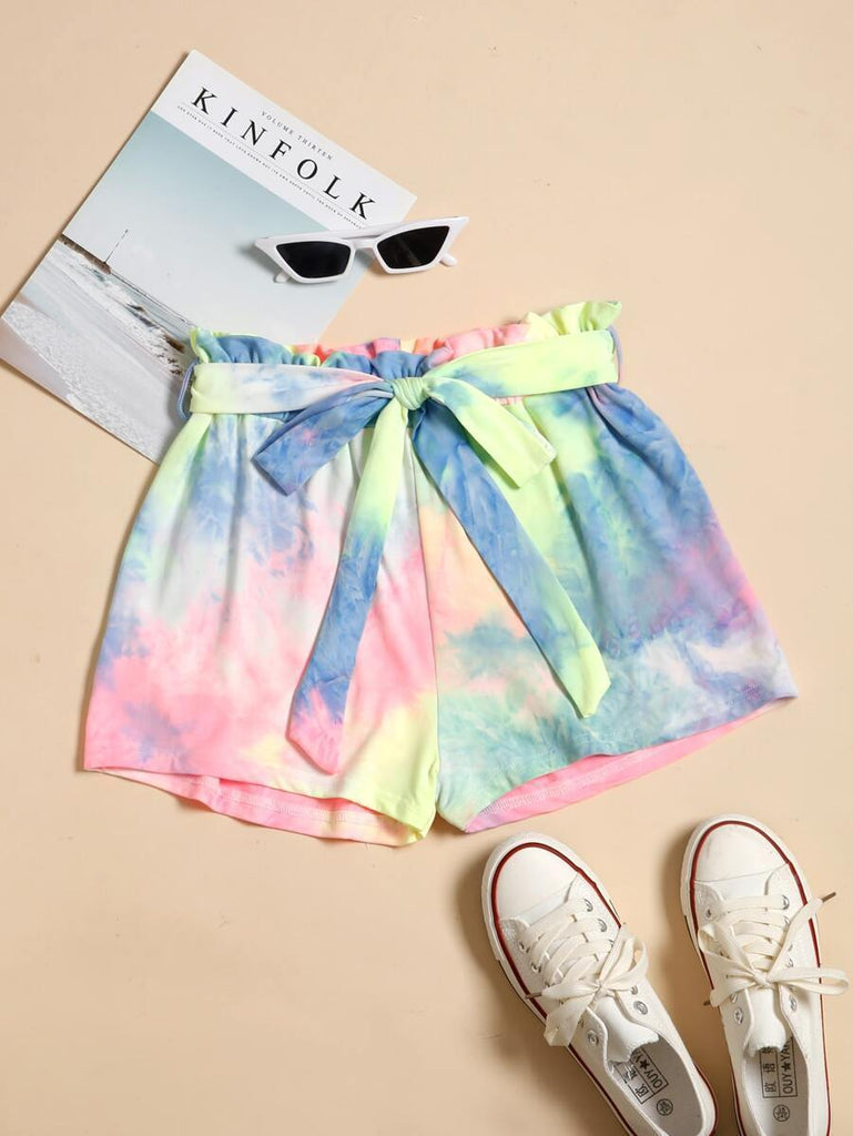 Tie Dye Paper Bag Waist Shorts