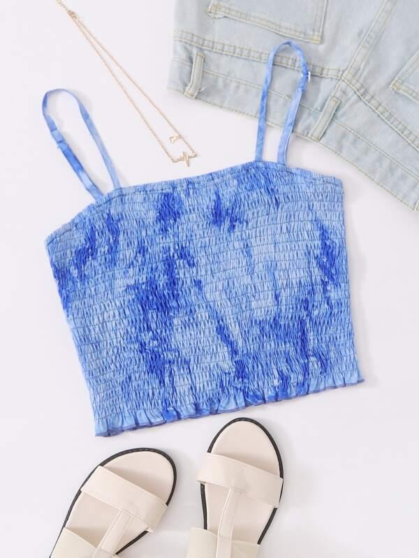 Tie Dye Shirred Frill Cami Top - $16.00 SGD