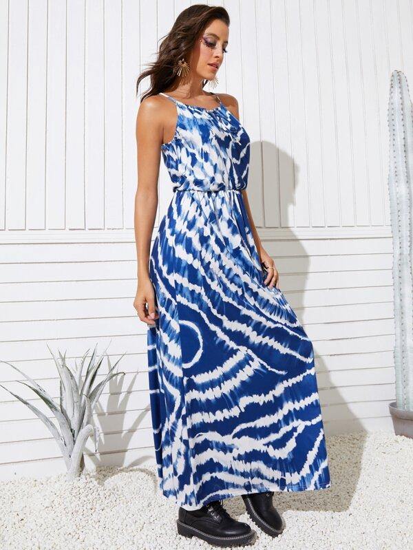 Tie Dye Tie Front Peekaboo Cami Dress - $31.00 SGD