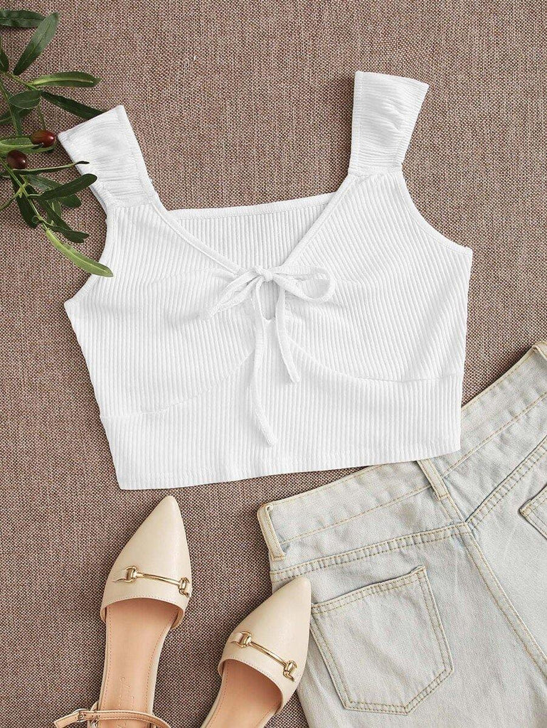Tie Front Rib-knit Crop Top - $29.00 SGD
