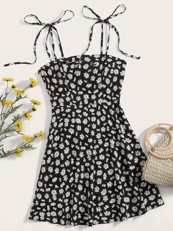 Tie Shoulder Daisy Floral Print Cami Dress