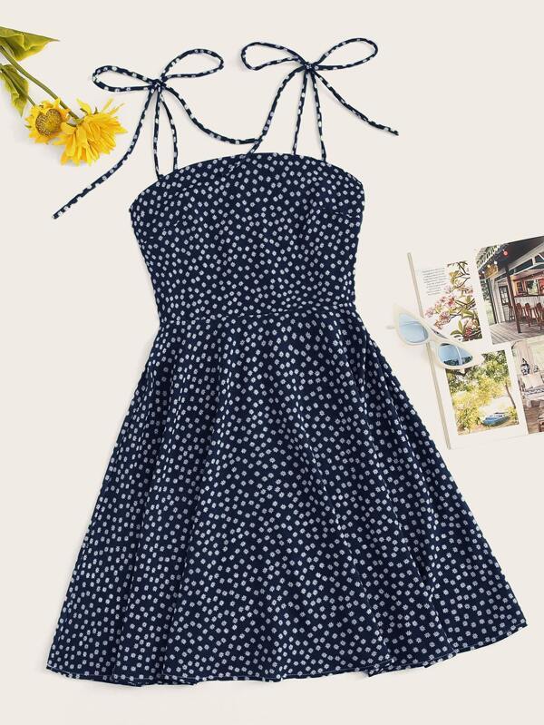 Tie Shoulder Ditsy Floral Cami Dress