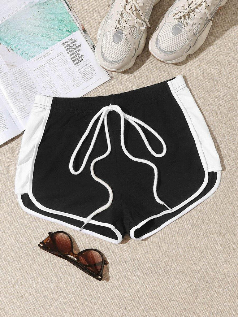 Tie Waist Contrast Sideseam Dolphin Shorts