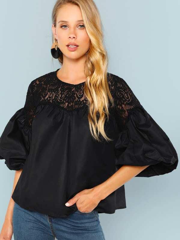 Trumpet Sleeve Floral Lace Yoke Blouse