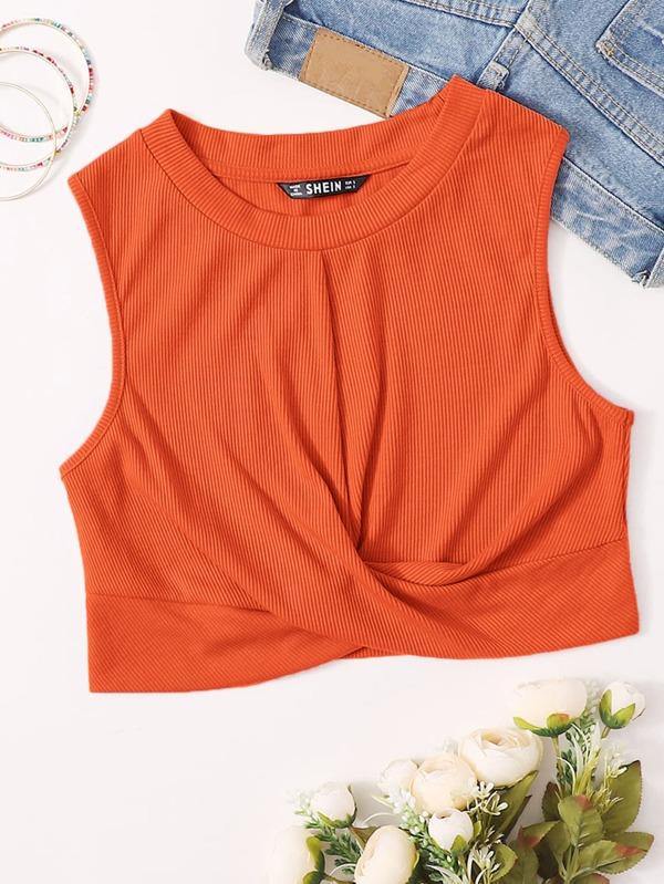 Twist Hem Rib-knit Crop Top - $30.00 SGD