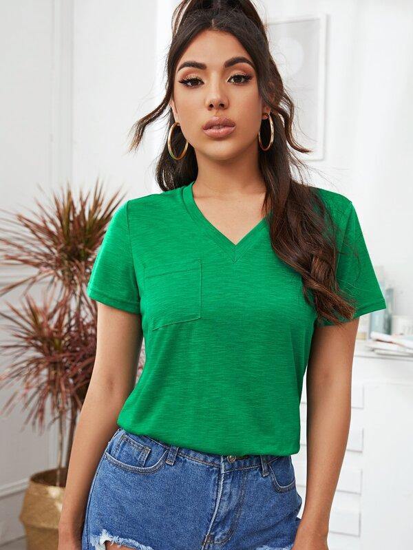 V-neck Pocket Patched Heather Knit Tee