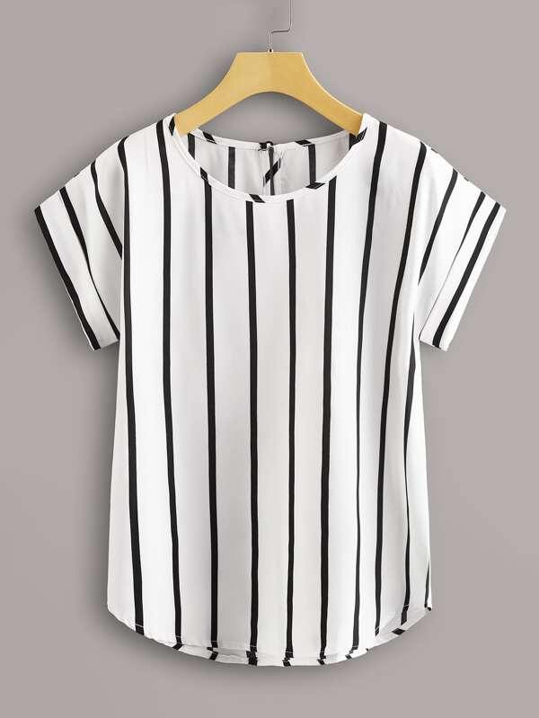 Vertical Striped Curved Hem Blouse