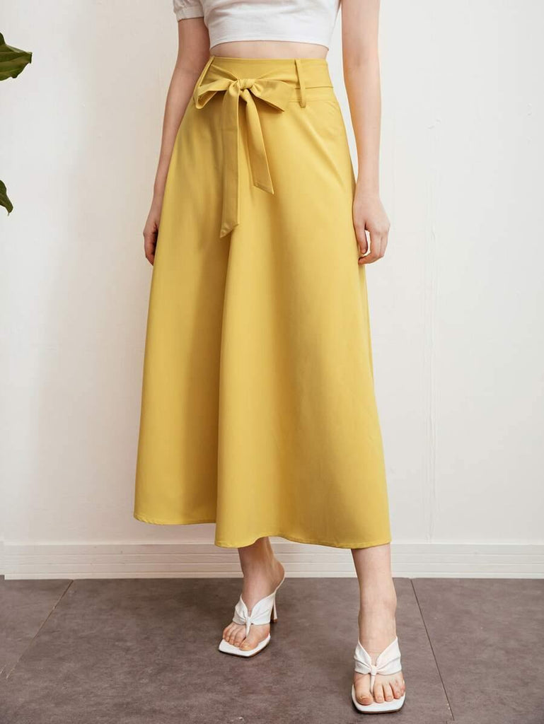 Zipper Side Belted Flare Skirt - $23.00 SGD